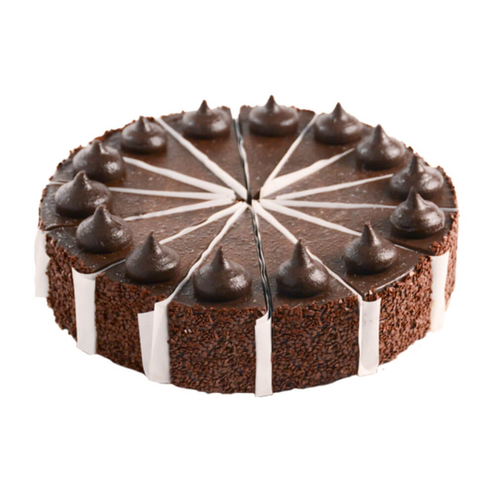 Creamy, hand-folded chocolate truffle, made with real cream, and chocolate sponge cake are generously covered with a chocolate glaze. A La Rocca original!